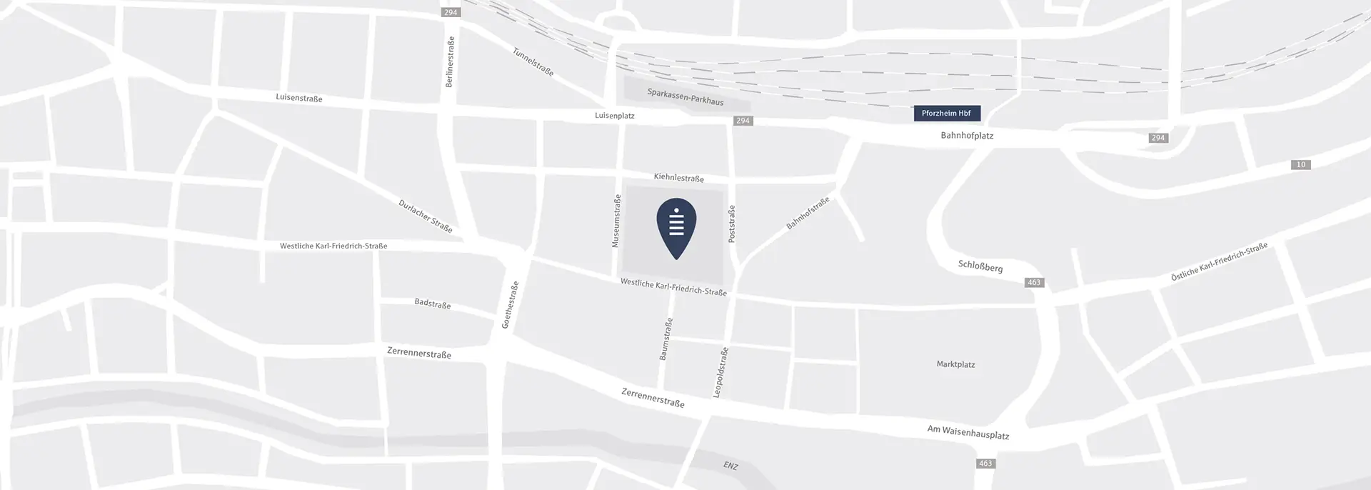 Anfahrt zum Pforzheimer Hauptbahnhof oder Leopoldplatz/Leopoldstraße. Von dort aus gelangen Sie in ca. 5 Minuten Fußweg zur Sparkasse Pforzheim Calw.